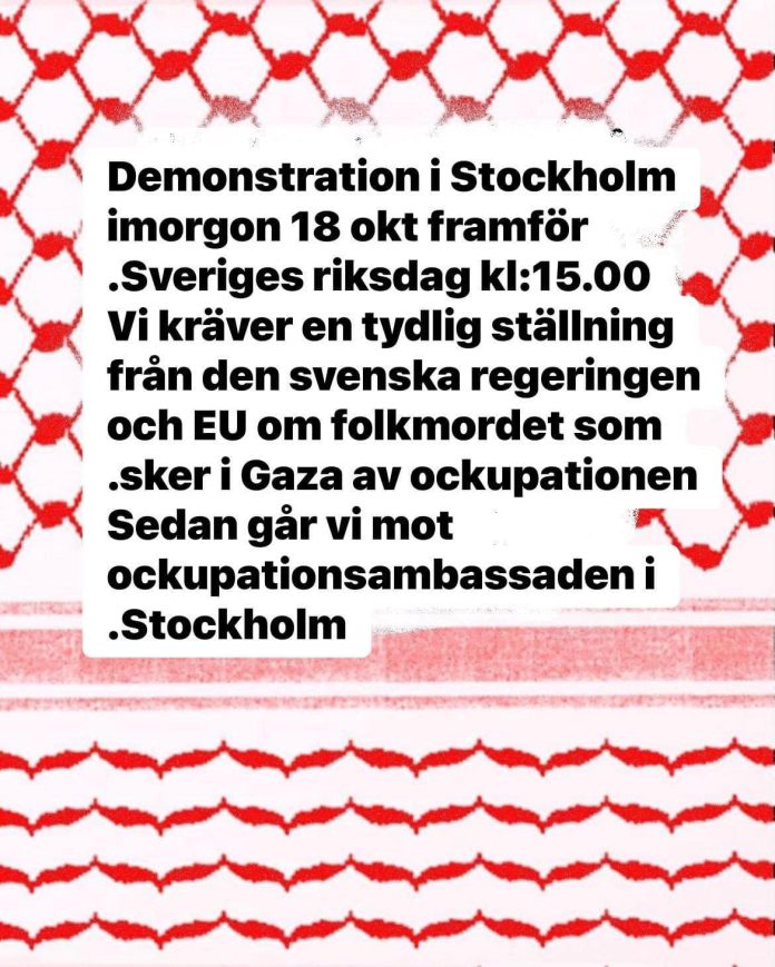 Imorgon 18 okt är alla kallade till demonstration fram för riksdagen kl 15:00