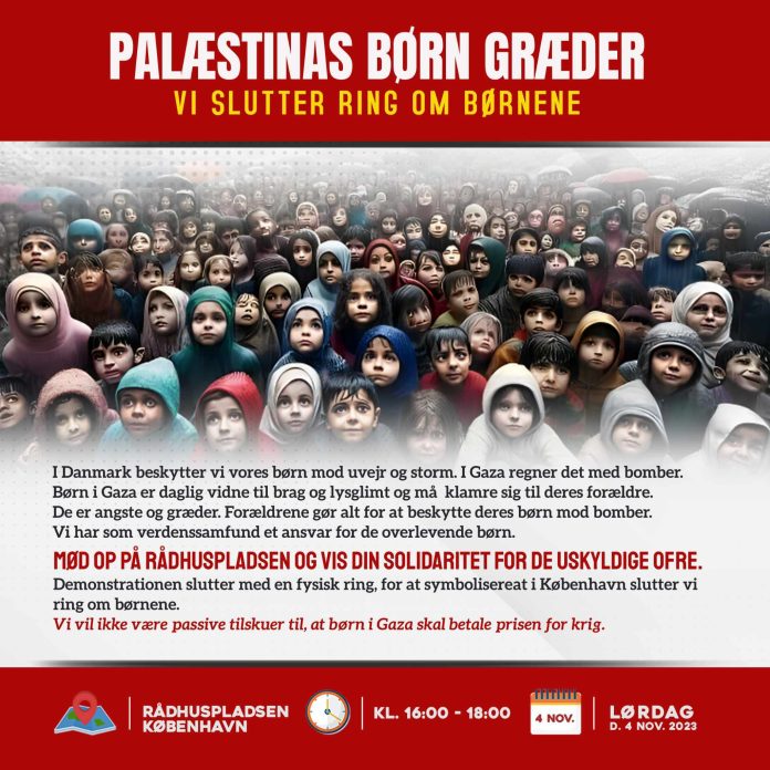 Mød op på Rådhuspladsen Lørdag den 4. november og vis din solidaritet for de uskyldige ofre.