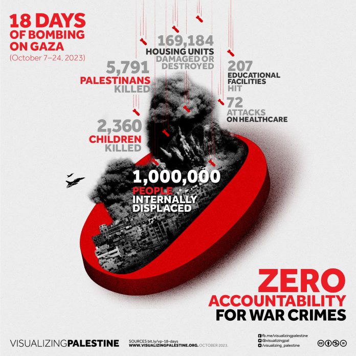 18 days of continuous Israeli bombing has killed and injured thousands of Palestinians, and displaced over 1 million people in Gaza.